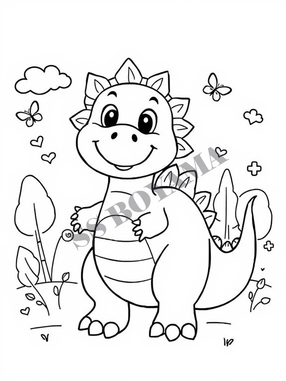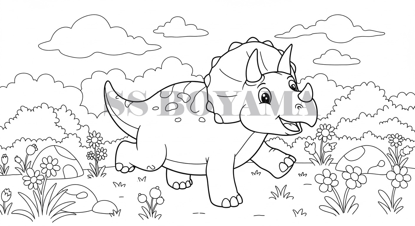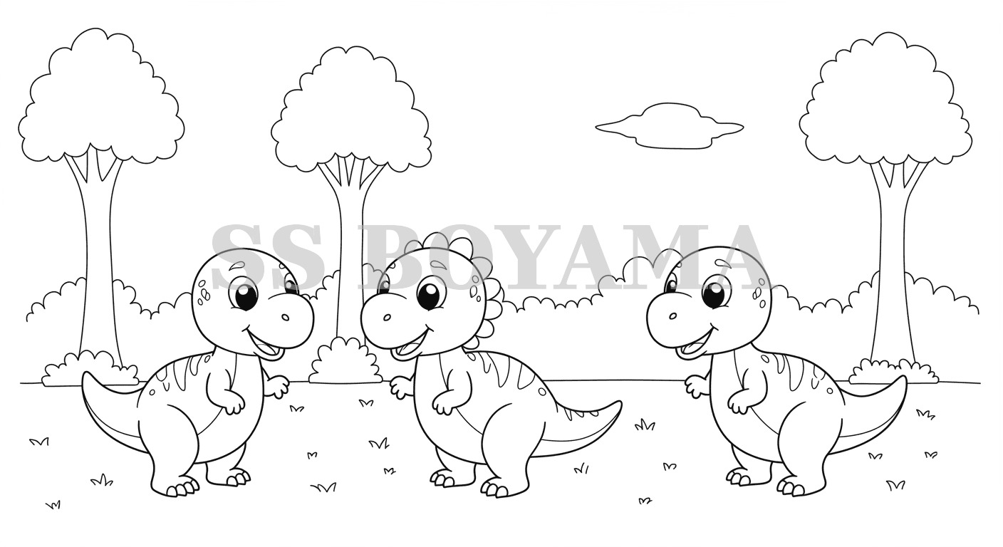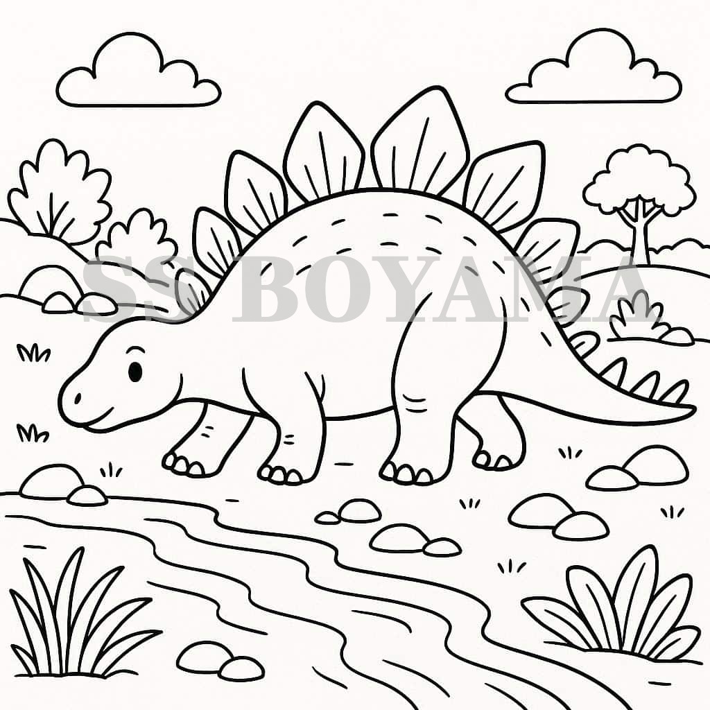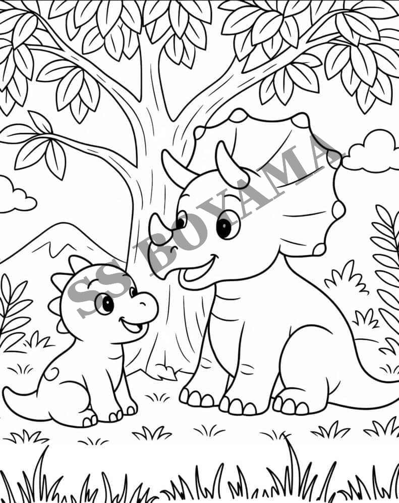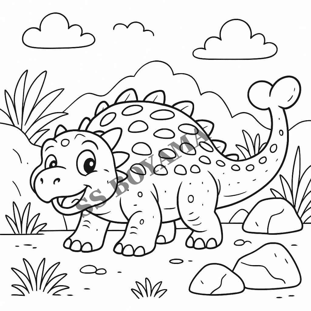 Kitapta; ankylosaurus, stegosaurus, triceratops, brontozorus, T-Rex ve pterodaktil gibi sevimli dinozor karakterleri yer alır. Ayrıca her sayfa yalnızca dinozorlarla sınırlı değildir; arka planda ağaçlar, volkanlar ve taşlar gibi basit detaylar da bulunur. Böylece çocuklar yalnızca bir karakteri değil, küçük bir manzarayı boyayarak kendi dinozor dünyasını yaratır.